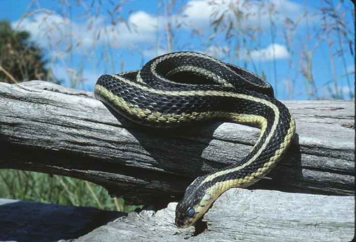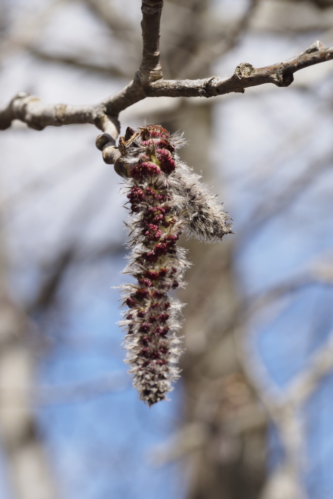 At the side of my house I was startled (but not scared) when I encountered a sunning Garter Snake – it loved the new warmth of spring! Garter Snakes are named after striped garter belts that were used to hold up socks and stockings before elastics were invented. In fact, their scientific name sirtalis means `like a garter belt` in Latin! Then I found out that the Aspen trees at the front of our house are male (some trees have male and female flowers, others, like aspens, are either male or female.) These had male flowers (middle photo), also called catkins. The tiny purple sacs on the catkin are filled with pollen, which will float on the wind to fertilize female aspen flowers. Later in spring, female aspen catkins become a string of fluffy seeds, which get carried on the wind like snowflakes! My next sign of spring was a Dandelion, just starting to grow. Dandelions get their name from `dent-de-lion,` which means `lion`s tooth`in french. But their French name is actually `piss-en-lit` because they are a diuretic (if you eat them, you `wet the bed`)!