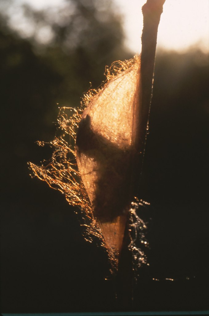 Finally, in late summer, the caterpillar spins a cocoon to protect it through the cold winter months, and it changes into a pupa.