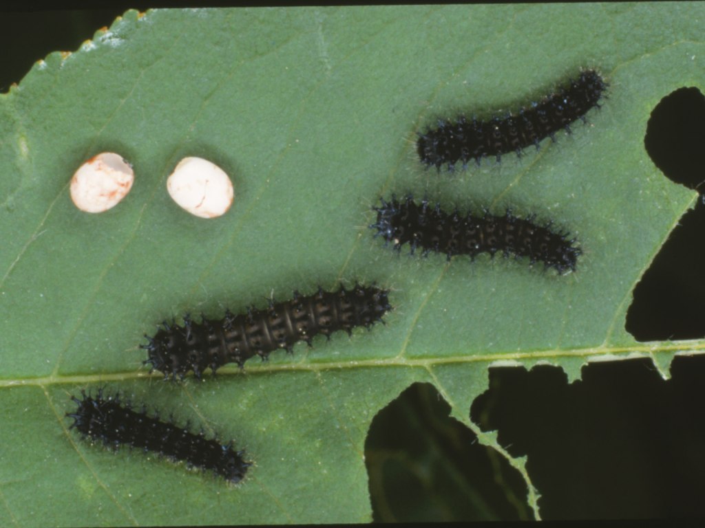 The newly-hatched caterpillars are insatiable eaters and grow quickly; if a human baby grew as fast it would weigh as much as an elephant after only a couple of months!