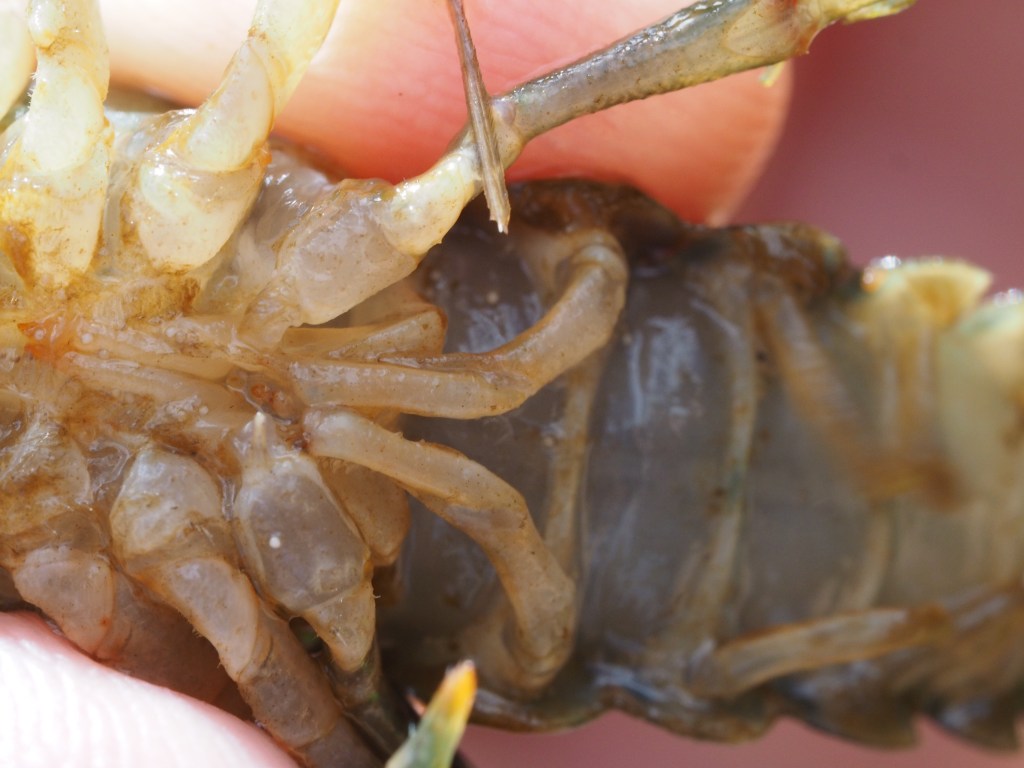 Take a look for crayfish under rocks in a local stream or river (kids should always be with an adult near rivers, of course). All you need is a net or even a kitchen sieve, and a container to put them in. And you can tell male from female easily – just check out the video. Males have enlarged swimmerets under their tail that extend forward under their back legs (for depositing sperm). Try picking them up, and see if you can tell the difference! Don’t forget to put the rocks back where you find them, and release the crayfish (and other critters you may discover) soon.