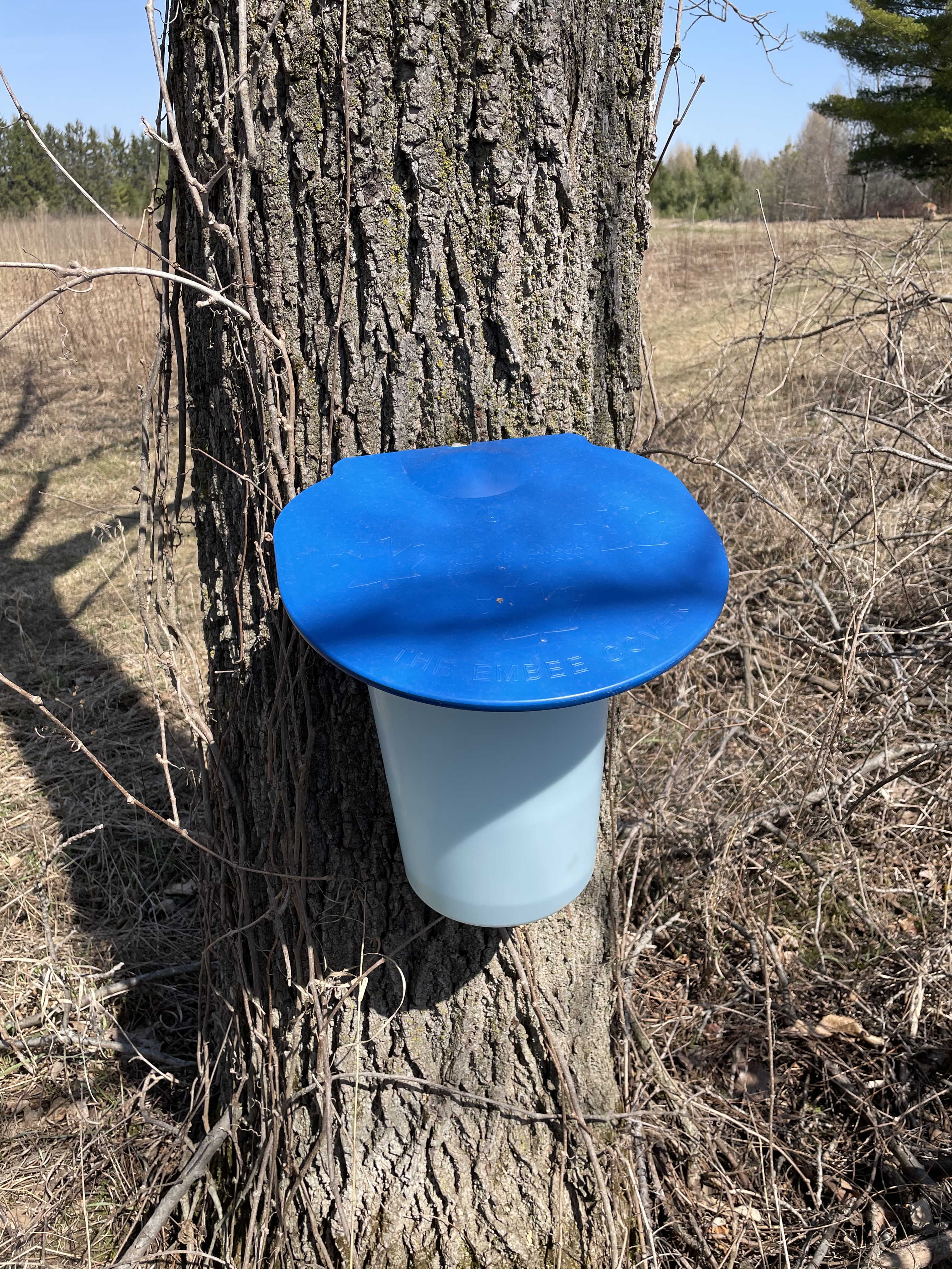 I live in a swampy area, with lots of silver maples. That was my first experiment. I tapped a few medium to very large trees in or at the edge of the swamp, including one that I had to walk across ice to get to (later in the season I visited that one by canoe!). The verdict: Good syrup, slightly less sap sugar content (than sugar maple sap), but since these trees were in the open with big crowns, their sap was fairly sweet! The sap to syrup ratio ranged from 41:1 (great) to 52:1 (not bad), and the sap I measured on March 20, 2021 had a sugar content of 2.6% (very good).