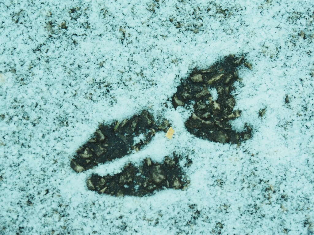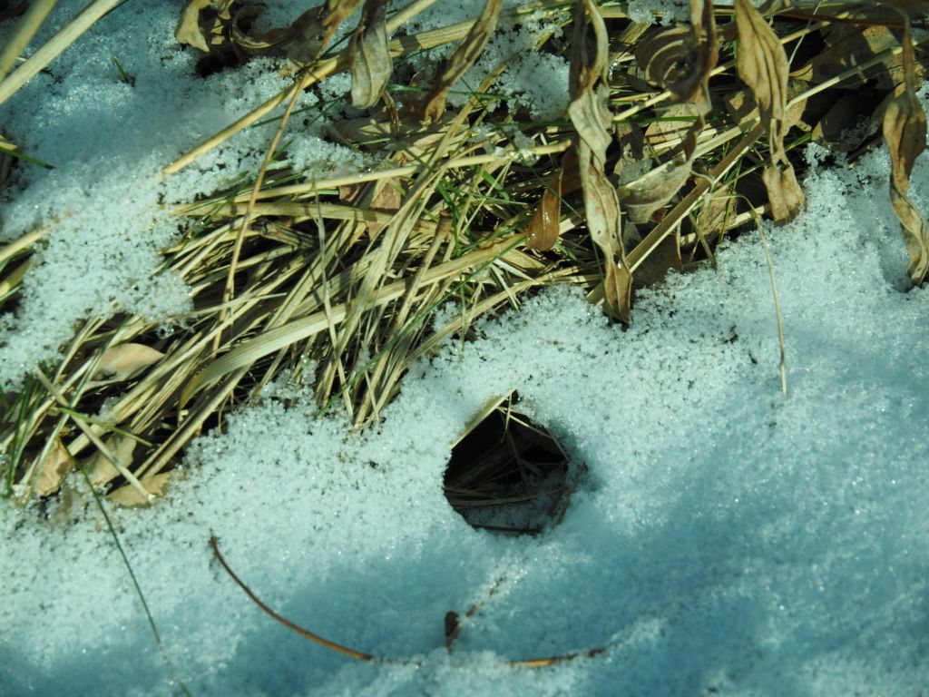 It’s great fun to follow a set of tracks. You can often figure out which way the animal was going, but even following a track backwards (“back-tracking”) reveals much. You may find out what the animal ate, where it bedded down, where it dashed away from a predator (or dashed at prey), and -yep- what its urine and droppings (scat) look like.